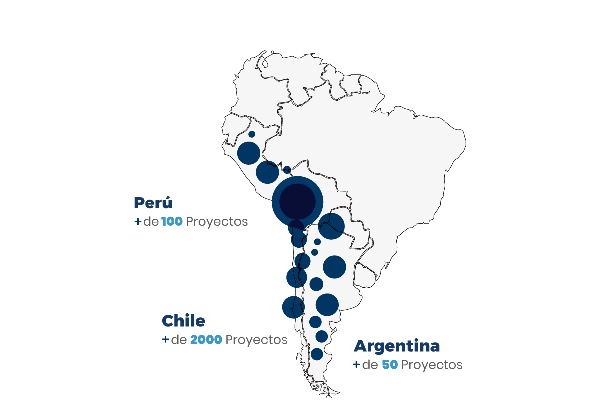 Para aquellas empresas que han expandido sus operaciones al resto de Latinoamérica, hemos ampliado la cobertura de información de proyectos de inversión a Argentina y Perú. Podrás encontrar la información de las empresas mandantes y sus más de 200 proyectos en dichos países dentro de los sectores de Minería, Energía e Hidrocarburos, cuya inversión sea igual o mayor a USD 5 Millones.